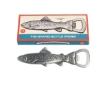 Kapsylöppnare i rostfritt stål i form av en fisk.