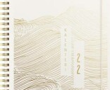 Kartongomslag med guldtryck. Kalenderöppning en vecka, timdistribution 08-20, kolumn för anteckningar, aktuella och nästa månads kalendertabeller. Kalendern innehåller årsplaner för innevarande och nästa år, soluppgångs- och solnedgångstider, helgdagar runt om i världen, noteringssidor och en telefonbok. Kalenderavsnitt: vecka 48 2021-vecka 1 2023. Trespråkig: finska / svenska / engelska. Parad tråd. FSC®. Storlek: 148x210 mm (A5).