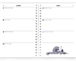 Svensk- och finskspråkig. Mönstrade sidor med utrymme för egna anteckningar. Två tarra-ark medföljer.