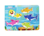 Placera mammahajen, pappahajen och andra pusselbitar på sina respektive platser. Baby Shark-pusslet har 5 pusselbitar. Sjung med i Baby Sharks hitlåt medan du bygger pusslet för att få tiden att flyga iväg.