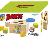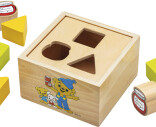 Plocklåda med avtagbart lock och 6 klossar, varav några formade som dunderhonungsburkar.