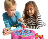 Ett roligt fiskespel där det gäller att fånga så många fiskar som möjligt med hjälp av fiskespöt. Den snurrande plattan med fiskar drivs med 2 st AA-batterier som ej ingår.