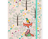 Anteckningshäfte A5 med mjuka pärmar och gummiband.