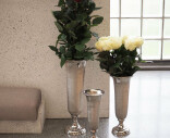 Metallvasen är 50cm hög och 20cm i diameter upptill.