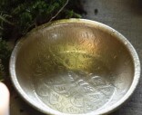 Fin liten rund bricka med bladmönster inuti och antik mässingsfinish från Ib Laursen. Denna lilla bricka är väldigt dekorativ att ha stående framme, använd den för att förvara småsaker, eller gör en fin dekoration med lampor och andra dekorationer. Mått: H: 2,5 cm, Dia: 11 cm, Material: Aluminium