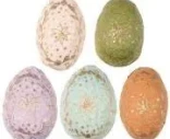 De vackra, små, tvådelade påskäggen är gjorda av "katran", som är återvunna tygrester av bomull från klädindustrin. En bomullsmaché tillverkas av tygrester och figurerna formas sedan och handmålas.