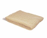 Tunn pläd av skön bomull med vävt mönster i vitt och gult med fransar i vitt. Passar fint på balkong eller uteplats. Material: 100% bomull. Tvättråd: 30°C, tål ej torktumling, använd ej blekmedel.