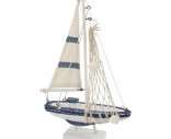 Blå vit Segelbåt i trä med nät 27x18cm