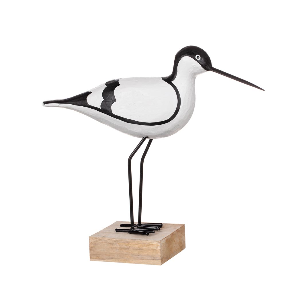 Fågel vit i trä på smidesben 30cm