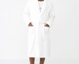 Unisex. Fluffig och skön morgonrock i 90% bomull och 10% polyester med sjalkrage och fickor framtill. En riktigt skön badrock i unisex-modell; för damer rekommenderas 1-2 storlekar mindre än normalt. Längden från högsta punkten på axeln är 124 cm i storlek Medium.