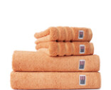 Torka håret med stil med denna underbara och superabsorberande handduk i bomullsfrotté i en mjuk persiko-/melonfärg. Denna handduk i bomullsfrotté har jacquardränder och en Lexingtonflagga nedtill.