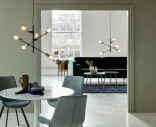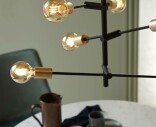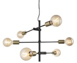 Vacker pendel i mattsvart metall och mässing. IP20, klass 2. 6 x E27-sockel, max 28W. Ekskl. ljuskällor. Svart textilsladd 200 cm. Svart takkopp i metall, diameter 12 cm och höjd 7 cm. Energiklass: A++ - E. 230V.