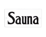 Strömshaga plåtskylt i emaljfinish med texten "Sauna" 4,5 x 9cm. Två alternativ för upphängning; antingen med medföljande dubbelhäftande etikett eller med spik i skyltens två hål.
