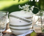 Handmålad skål i keramiskt lergods med logotyp. Varje tallrik har en unik prägel. Säljs styckvis. Mått: 14,5 cm i diameter