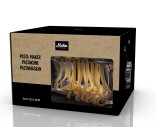 Rostfritt stål. Bordsfäste medföljer. Tjockleksväljare med 9 inställningar, skärvalsar för tagliatelle och tunn bandpasta. ytrengörning med en fuktig duk.