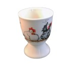 Äggkopp med tryckt motiv på tokiga hönor. Motivet är handritat av designern Camilla Ståhl. Äggkoppen är tillverkad i porslin och tål diskmaskin och mikrovågsugn.
