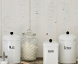 Ø 14,5 x H 24 cm Rund plåtburk i vitt med texten Socker ur vår populära serie Svarte Petter. Lock med svart knopp. Matcha gärna med plåtburken för Mjöl i samma serie.