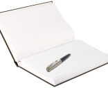 Svart, inbunden, med hårda pärmar. 9 mm mellan linjerna. 400 sidor.