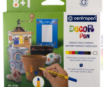 Centropen Decor-Pen lämpar sig för användning på ett stort antal ytor, inklusive sten, porslin, glas, papper, plast, trä och metall. Utmärkt för att dekorera dekorativa element. Pennan har en rund 1,5 mm spets. Lådan innehåller åtta färgade markörer (gul, orange, röd, lila, blå, grön, brun och svart) och en vit markör. Efter att bläcket har torkat i minst fyra timmar blir trycket permanent och vattentätt på porösa ytor. Förvara horisontellt.