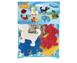 Förpackningen innehåller ca.3000 pärlor i olika färger och 4 plattor varav en hund, en elefant, en sexkant och en papegoija. Därtill finns det instruktioner och strykpapper.