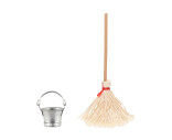 Kvast 11 cm och hink 3,5 cm. Setet innehåller hink och kvast.