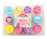 Set med 12 st stämplar med olika enhörningsmotiv. Levereras i en display á 10 st förpackningar.