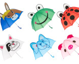 Roliga och färgglada barnparaplyer lyser upp även på gråa dagar och håller den lilla rullisten torr.