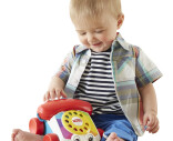 Fisher-Price Chatter Telephone hjälper barnet att börja prata och gå som ett proffs! Telefonen har ett vänligt ansikte, en snurrande skiva, roliga ringsignaler och ögon som rör sig upp och ner när telefonen dras längs golvet. 1+
