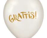 Ballong pärlvit m. texten Grattis, 6st