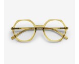 Åttakantiga läsglasögon med transparent olivgrön båge. 'Edgy' från Have A Look är lätta och eleganta med ett unikt och grafiskt utseende. Bågarna är feminina och delikata, passar de flesta ansiktsformer och är bekväma och behagliga att bära. Ett utmärkt val om du gillar glasögon som utstrålar personlighet utan att ta över all uppmärksamhet. Biobaserade bågar tillverkade av 45% naturlig ricinolja – ett material som är både lätt, hållbart och motståndskraftigt. Bekväma, flexibla fjäderskalmar som passar alla ansiktsformer och storlekar. Tunna och lätta akrylglas av hög kvalitet. Alla metalldelar är nickelfria. Filtfodral för glasögon tillverkat av återvunna plastflaskor (rPET).