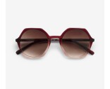 Åttakantiga solglasögon med gradvis tonad vinröd båge. 'Edgy' från Have A Look är lätta och eleganta med ett unikt och grafiskt utseende. Bågarna är feminina och delikata, passar de flesta ansiktsformer och är bekväma och behagliga att bära. Ett utmärkt val om du gillar glasögon som utstrålar personlighet utan att ta över all uppmärksamhet. Biobaserade bågar tillverkade av 45% naturlig ricinolja – ett material som är både lätt, hållbart och motståndskraftigt. Bekväma, flexibla fjäderskalmar som passar alla ansiktsformer och storlekar. Tunna och lätta glas i polykarbonat av hög kvalitet med 100% UV-skydd. Kategori: 3. Alla metalldelar är nickelfria. Filtfodral för glasögon tillverkat av återvunna plastflaskor (rPET).