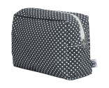 Necessär i prickigt blått tyg med dragkedja