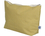 Stor necessär, 33x8x20cm, eller sminkväska i prickigt gult tyg, Canvas, med dragkedja. I serien Prick Gul ingår necessär och börs i fyra storlekar.